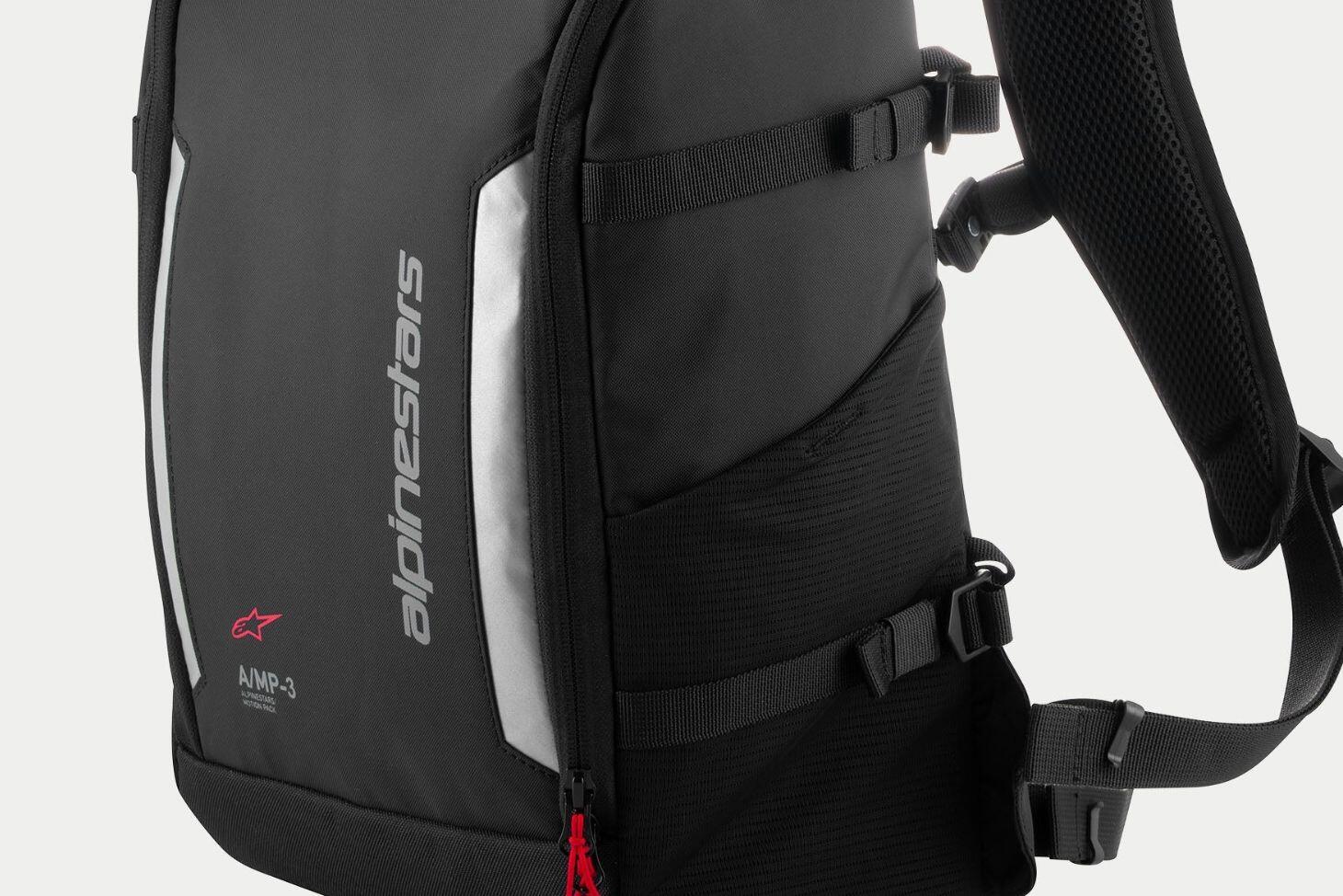 The Alpinestars Motion Pack 3 (AMP 3) is the perfect technical backpack designed for functionality and for carrying gear, both on and off the bike. The AMP 3 Backpack features an overall capacity of 17 liters and is constructed from a heavy-duty tech fabric with structured, padded walls and lower body reinforcements to help maintain the bag’s shape, as well as full, long zippered openings for easy and wide access.