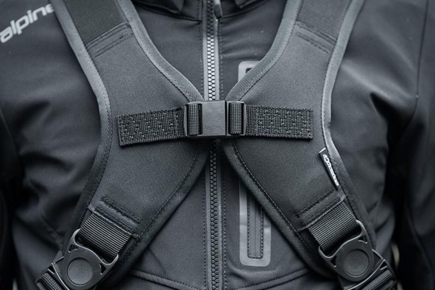 The aerodynamically shaped, semi-rigid Charger Pro Backpack is designed to excel at carrying bulky items over long distances in total comfort. Thanks to its adjustable harness with a magnetic closure, it delivers comfort by distributing the load evenly across the back, effectively making the weight 'disappear'. Constructed from heavy-duty fabric for durability, the Charger Pro Backpack comes equipped with a pocket to accommodate an Alpinestars Nucleon KR-Celli back protector and includes a helmet carrier.