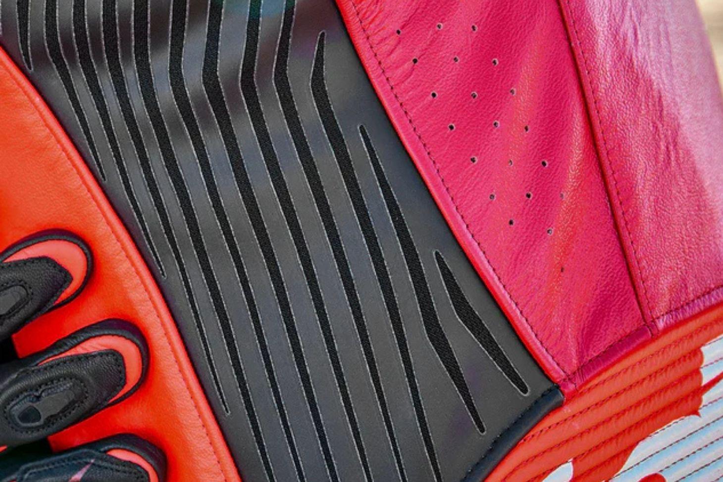 - Made with Flex Plus ‘racing grade’ dual-layer leather with a pre-curved race fit for body, arms, and knees