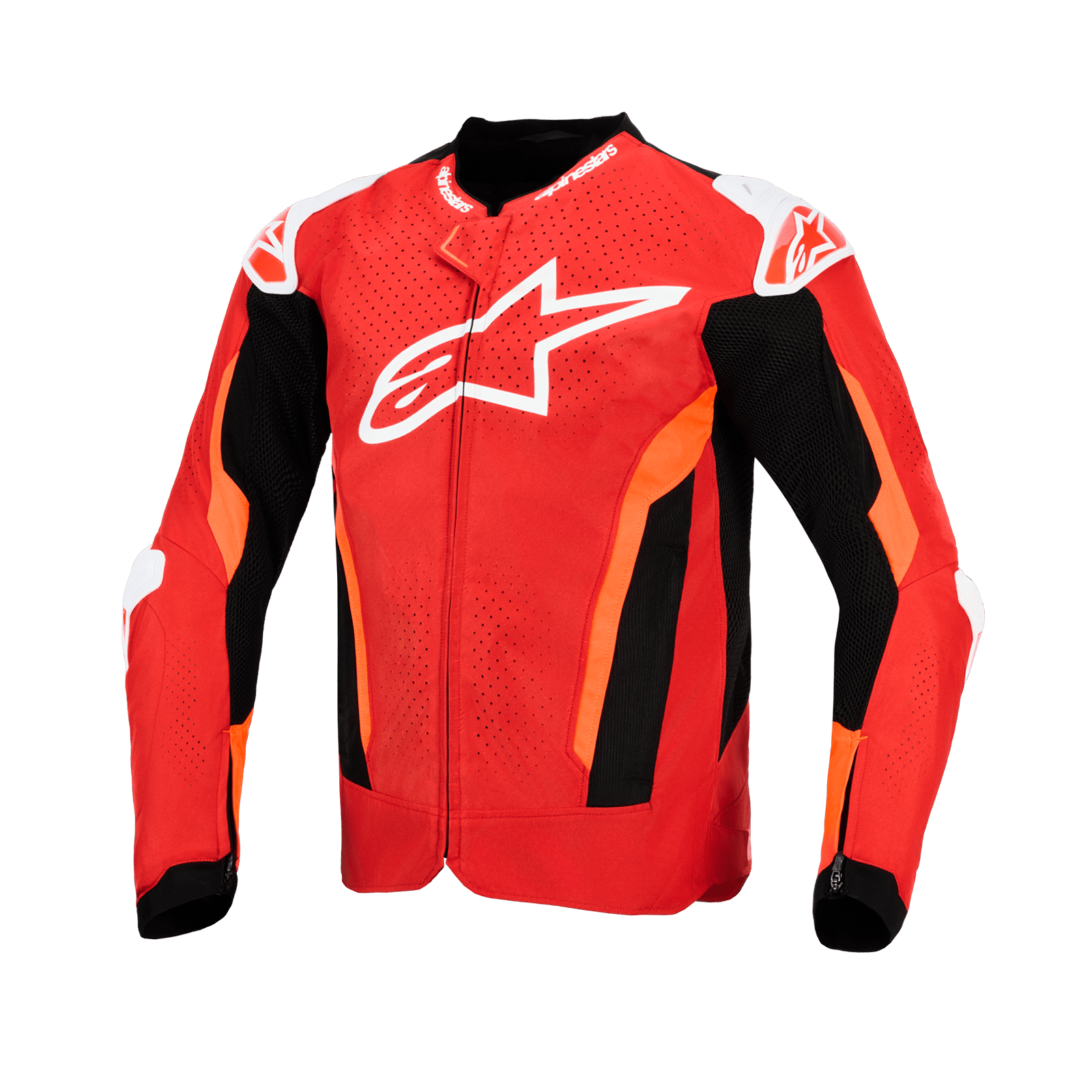 Lightweight sport textile jacket with race-spec aero hump, impact protection, and airflow for warm-weather riding.