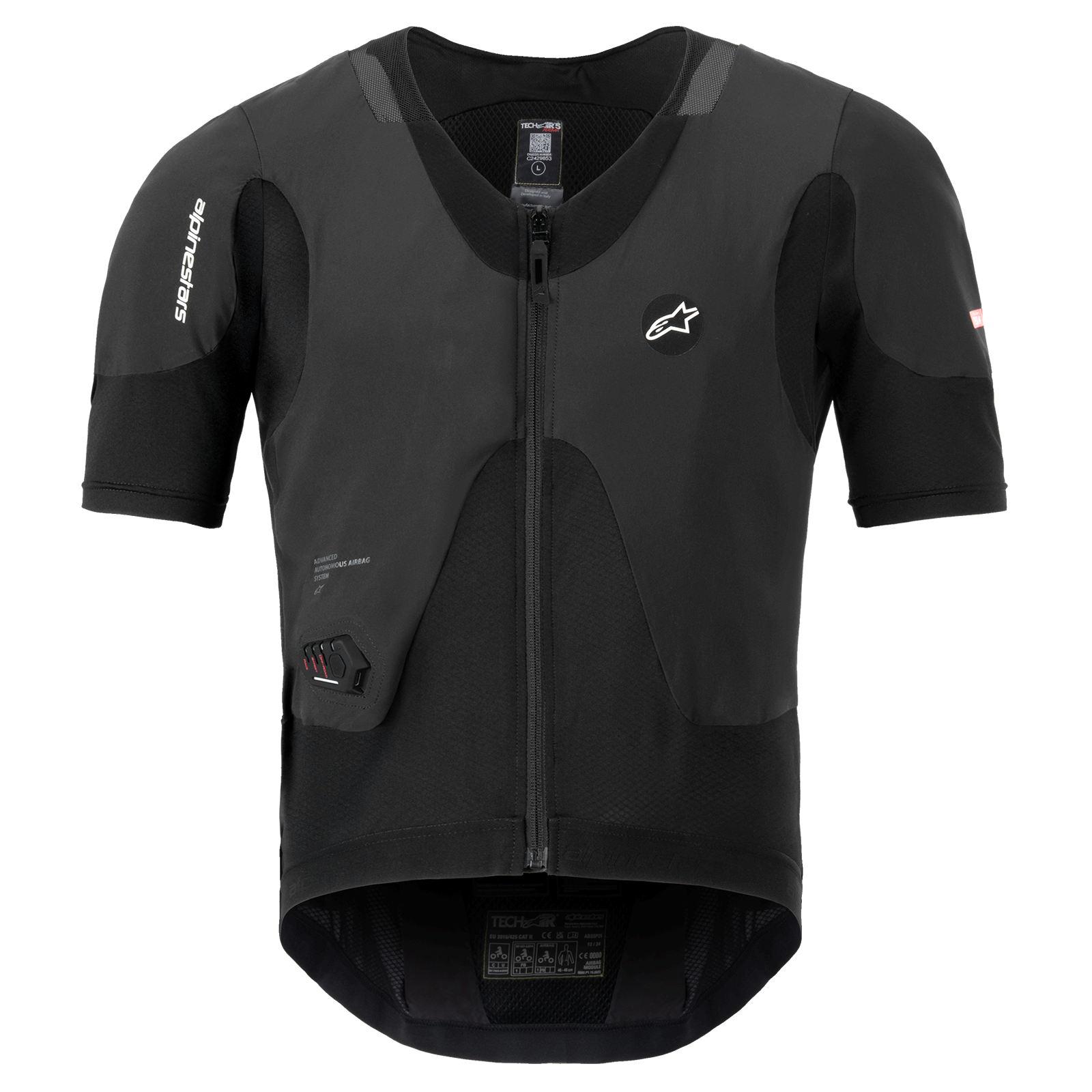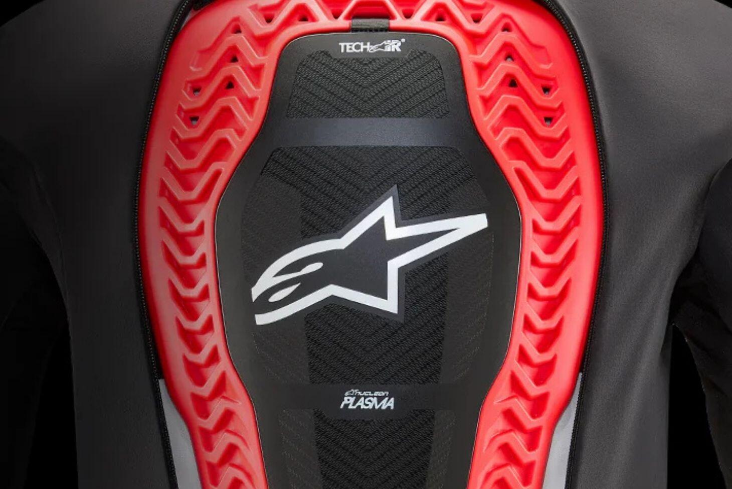 The Tech-Air® 5 Plasma is equipped with an integrated Nucleon Plasma back protector, a unique Alpinestars innovation. Plasma is an eco-friendly, sustainable, and lightweight material that effectively absorbs impact. Its advanced design ensures exceptional adaptability, breathability, and ventilation, providing optimal force dispersion, flexibility, and comfort. For passive protection, the back protector is CE Certified 1621-2 Level 1, offering full back coverage and enhanced safety.