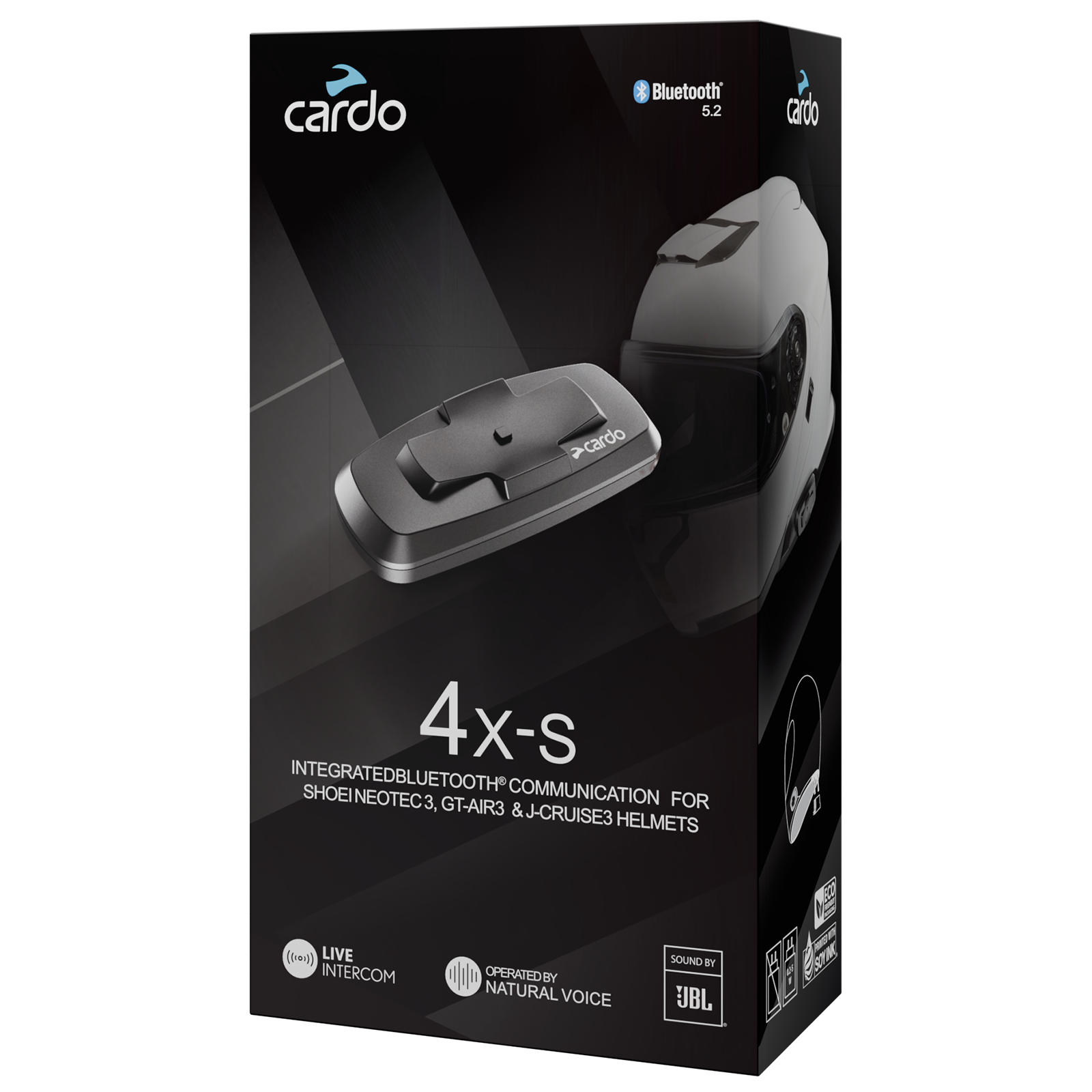 The Cardo SHOEI 4X-S is built for riders who want a clean, integrated communication setup without sacrificing performance. Designed specifically for Shoei Gen 3 helmets, it installs seamlessly into the Shoei GT-Air 3, Neotec 3 and J-Cruise 3 helmets, delivering a streamlined look with powerful connectivity. With LIVE Intercom, you get a reliable Bluetooth connection for two riders with automatic reconnect, keeping communication simple and consistent on the road. JBL 40mm speakers provide clear, rich audio, while automatic volume adjustment keeps sound balanced as conditions change. Add fast charging, over-the-air updates, and universal connectivity, and you’ve got a setup that keeps you connected every mile.