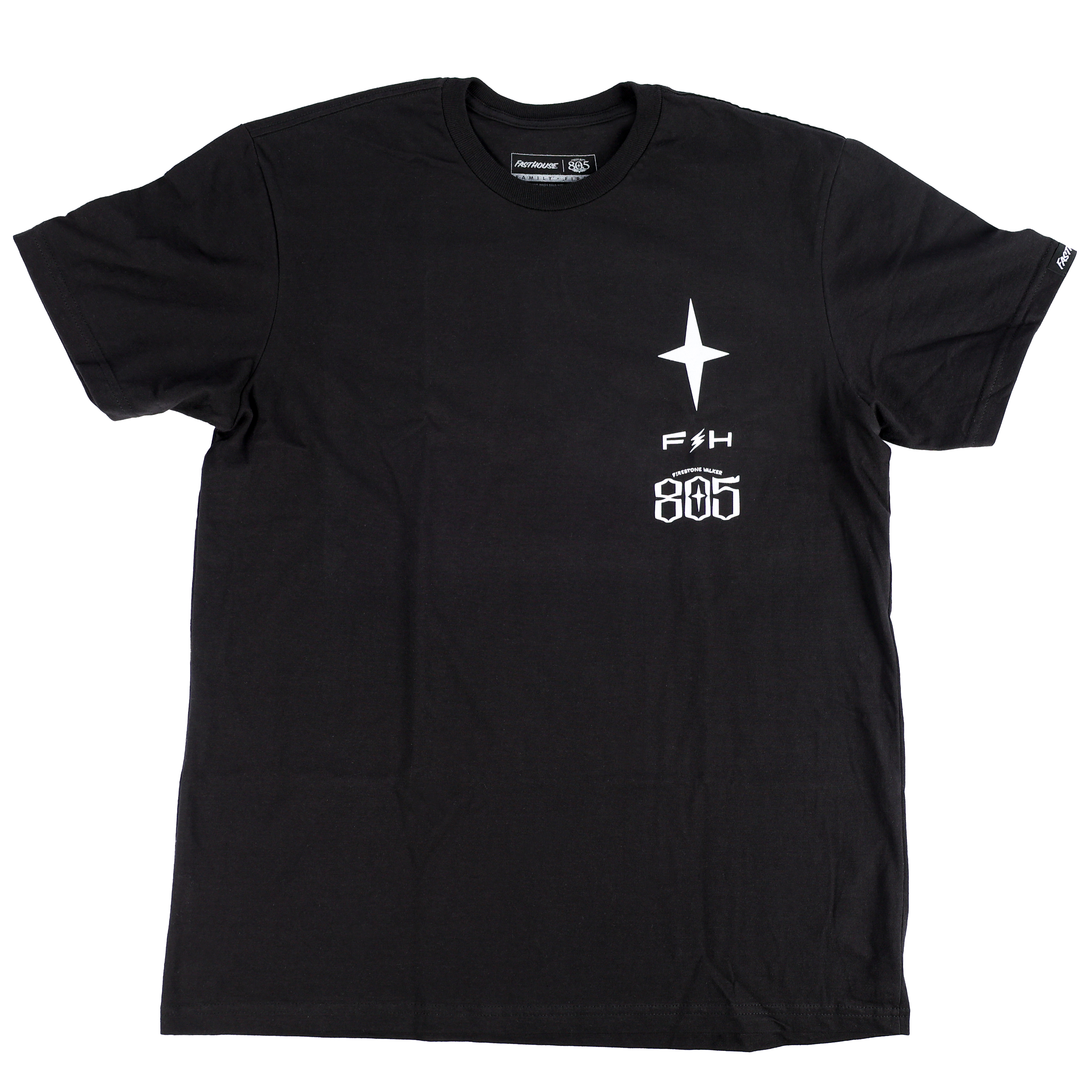- Woven Fasthouse label on wearer’s left sleeve