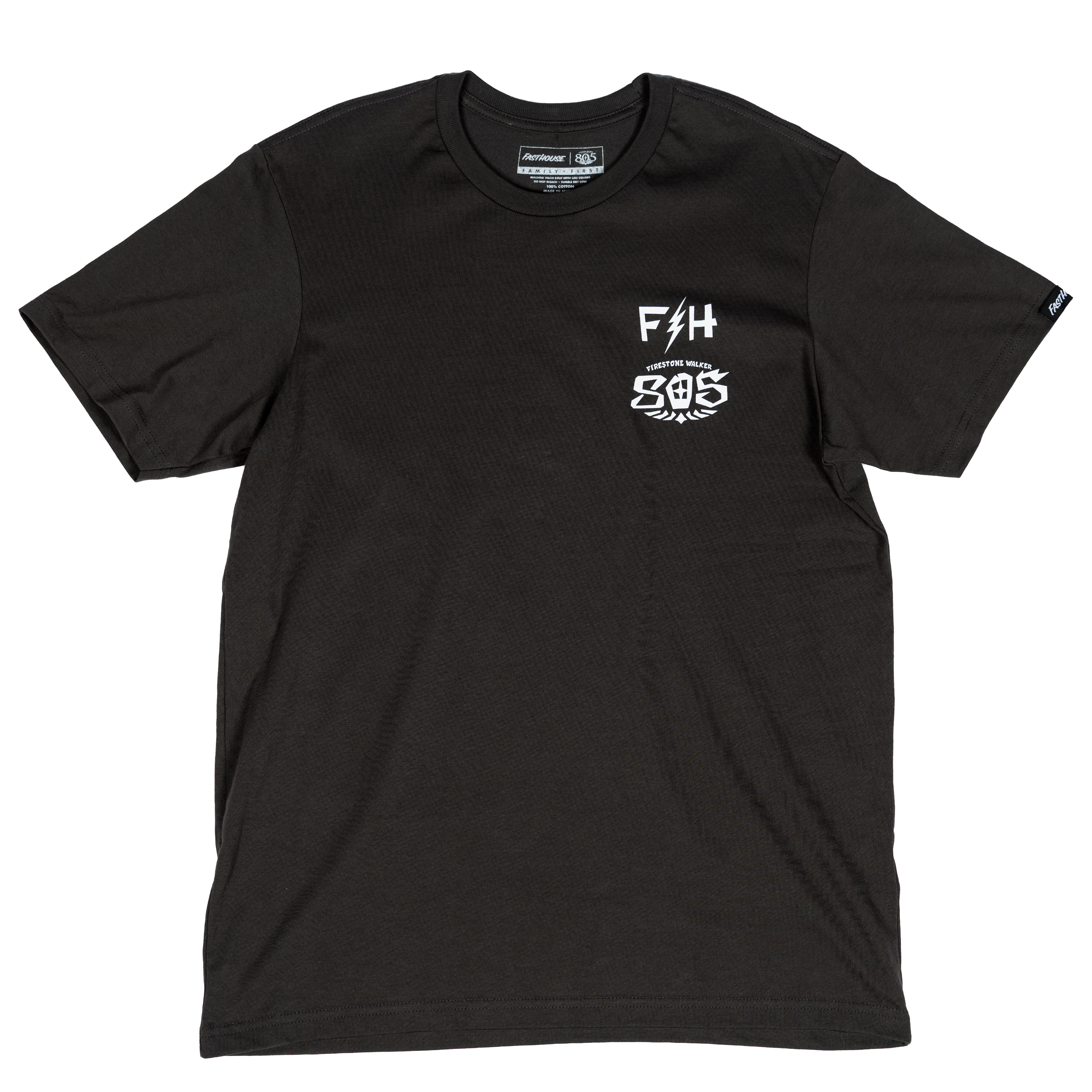 - Woven Fasthouse label on wearer’s left sleeve