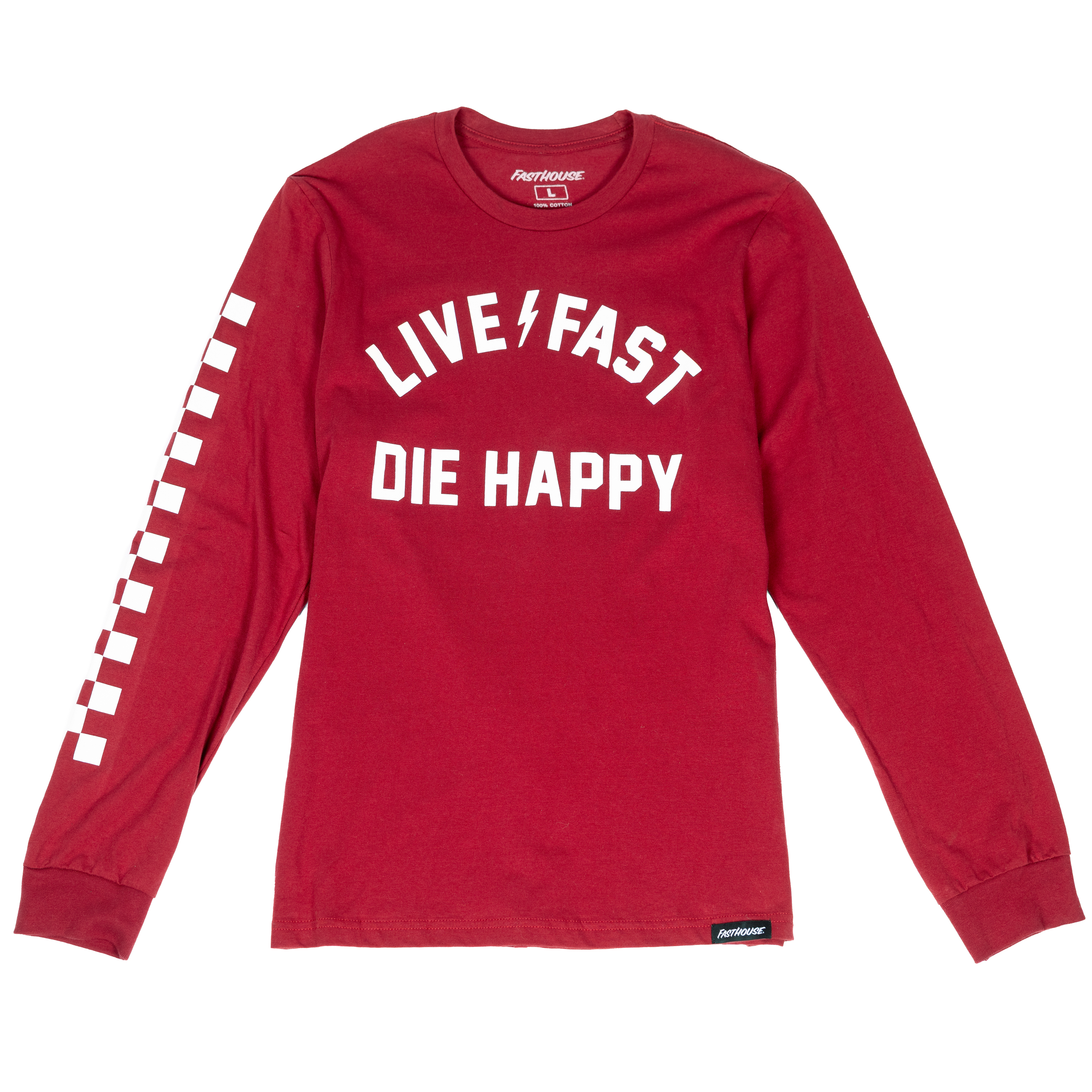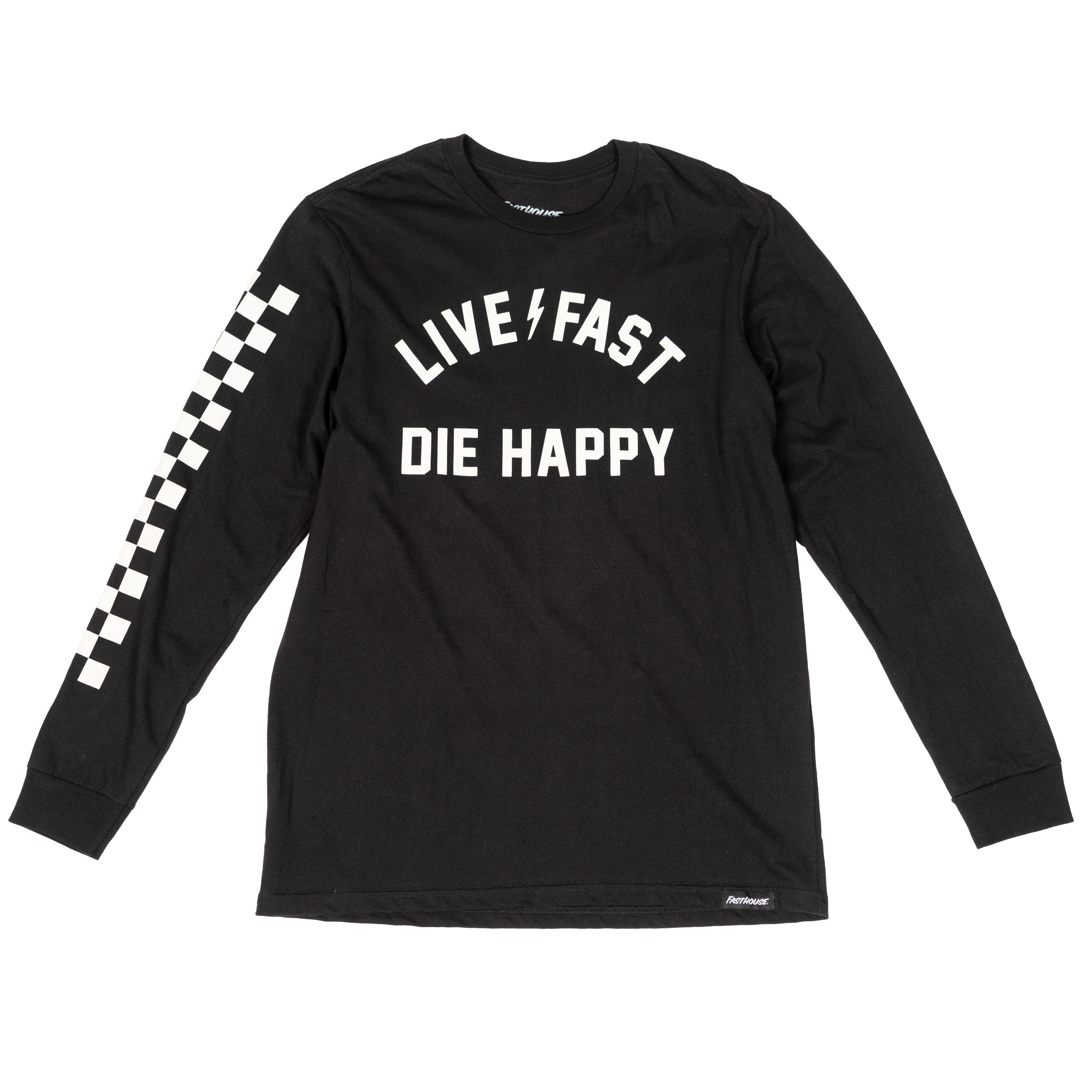Live fast and look good in the Die Happy Long Sleeve Tee. Made from 100% ring-spun cotton, it blends lightweight comfort with a clean, athletic fit. Pre-laundered to prevent shrinkage, finished with cuffed sleeves for that perfect mix of style and all-day comfort.
