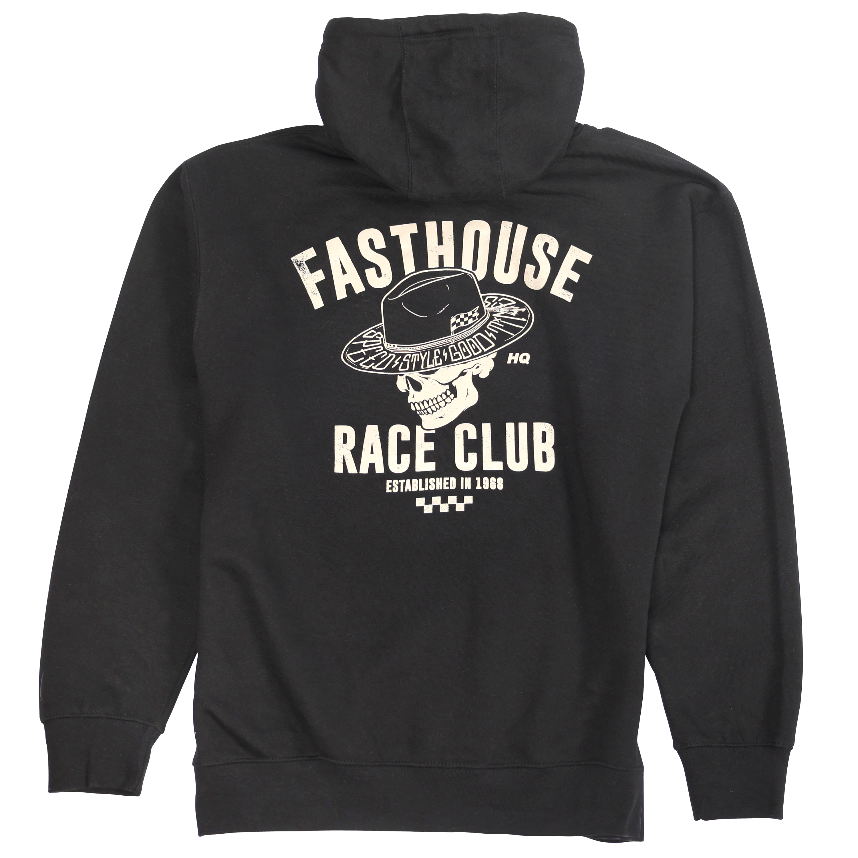 The Fasthouse HQ Club Hooded Pullover offers an edgy skull graphic and a comfortable fit for your next adventure or hangout.