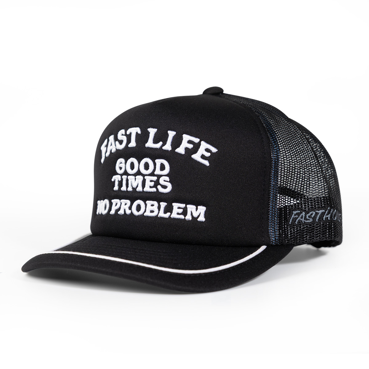 The No Problem Hat keeps things easy when the good times are rolling. With a clean look and breathable feel, it’s built to handle long days in the sun without missing a beat. Featuring a foam-front trucker design and mesh back panels, it delivers comfort and airflow all day. Finished with puff embroidered artwork, contrast details, and custom trims, it’s an easy go-to for keeping things laid-back wherever you are.