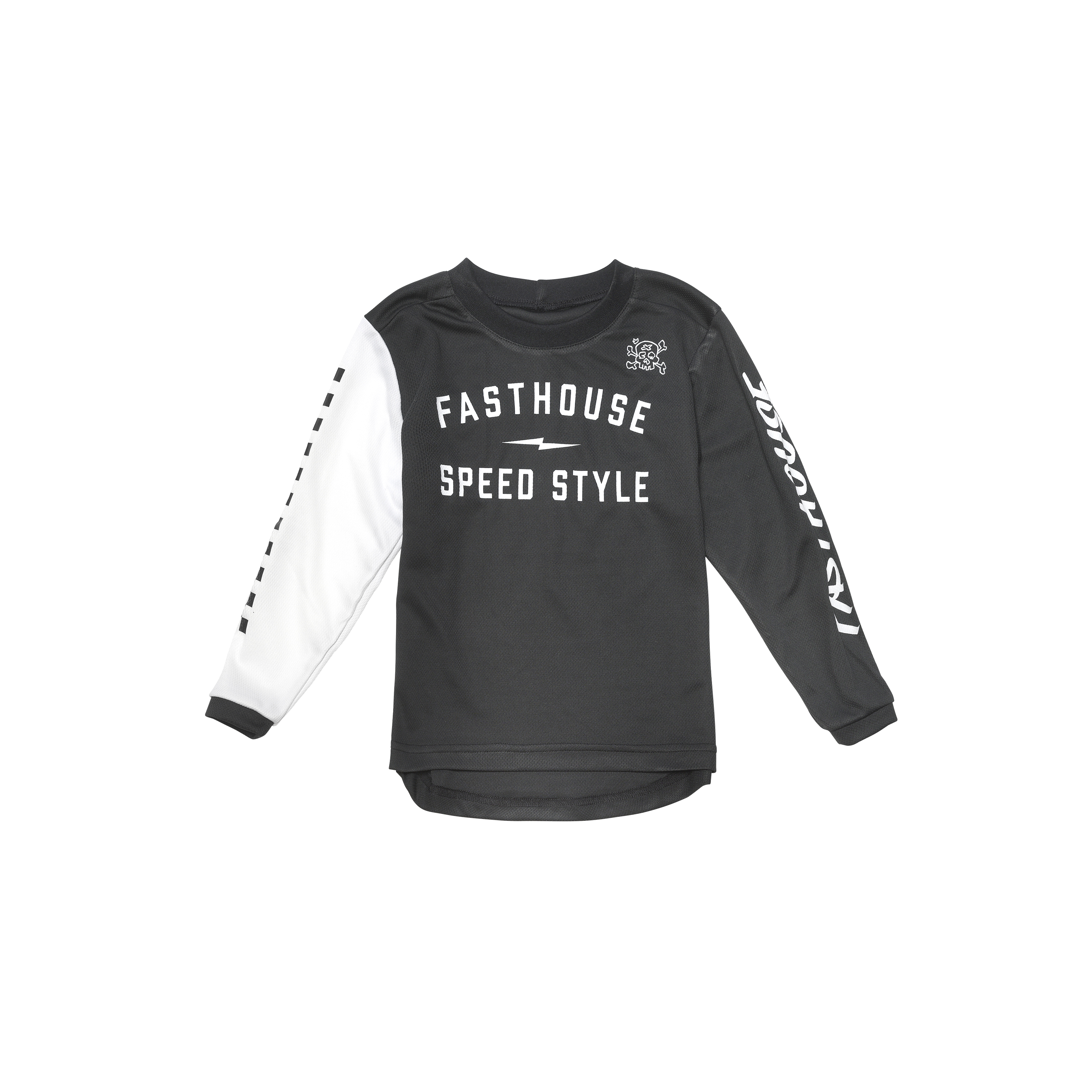 The Toddler El Nino Jersey brings the same quality and style of Fasthouse gear to the youngest riders. Made from 100% polyester, this jersey is designed specifically for toddlers, offering a comfortable fit that allows freedom of movement as they learn to ride. The moisture-wicking fabric helps keep little ones dry during active play, while the drop tail back ensures the jersey stays securely tucked in. With overlocked stitching for added durability and a high-quality silk-screened graphic on the chest, the Toddler El Nino Jersey is built to last through every adventure. The classic fit, with a regular torso, sleeves, and a round ribbed collar, makes this jersey a perfect blend of style and function for young riders.