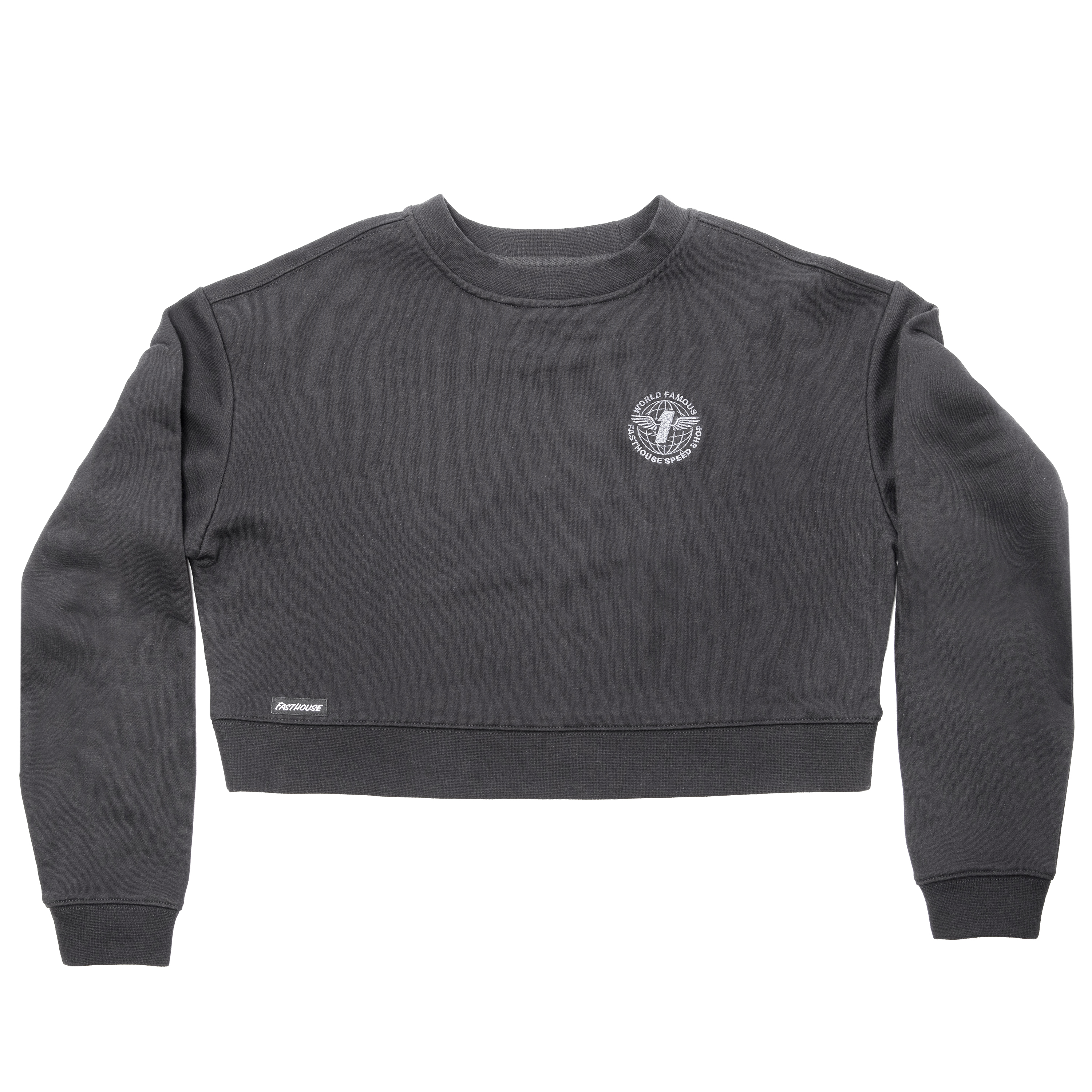 The Fasthouse Women's Renown Crew Neck Crop Pullover offers laid-back comfort with a soft midweight fabric and a modest cropped fit.