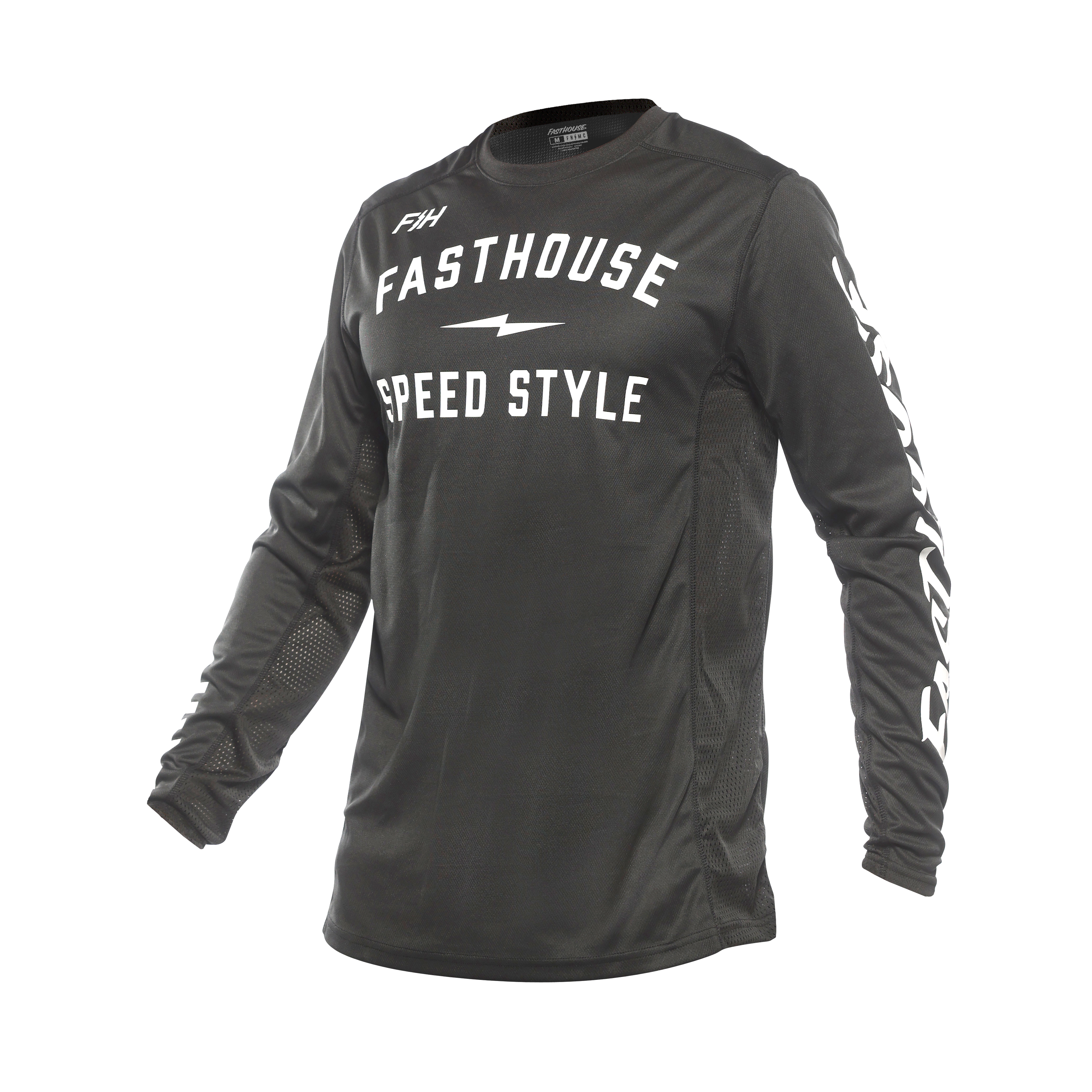 The Youth Grindhouse Grit Jersey offers durability, breathability, and moisture-wicking fabric for cool, comfortable rides.