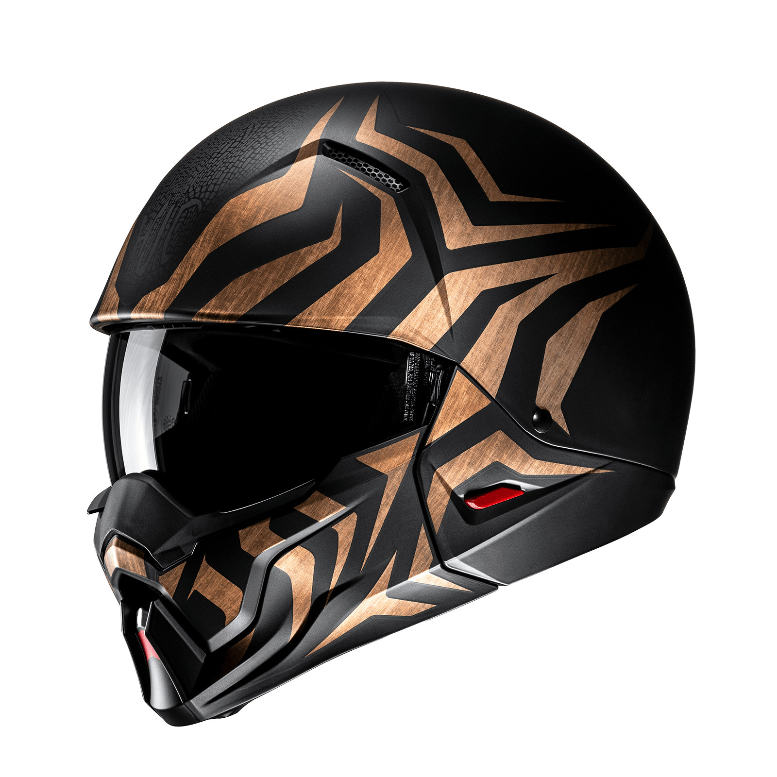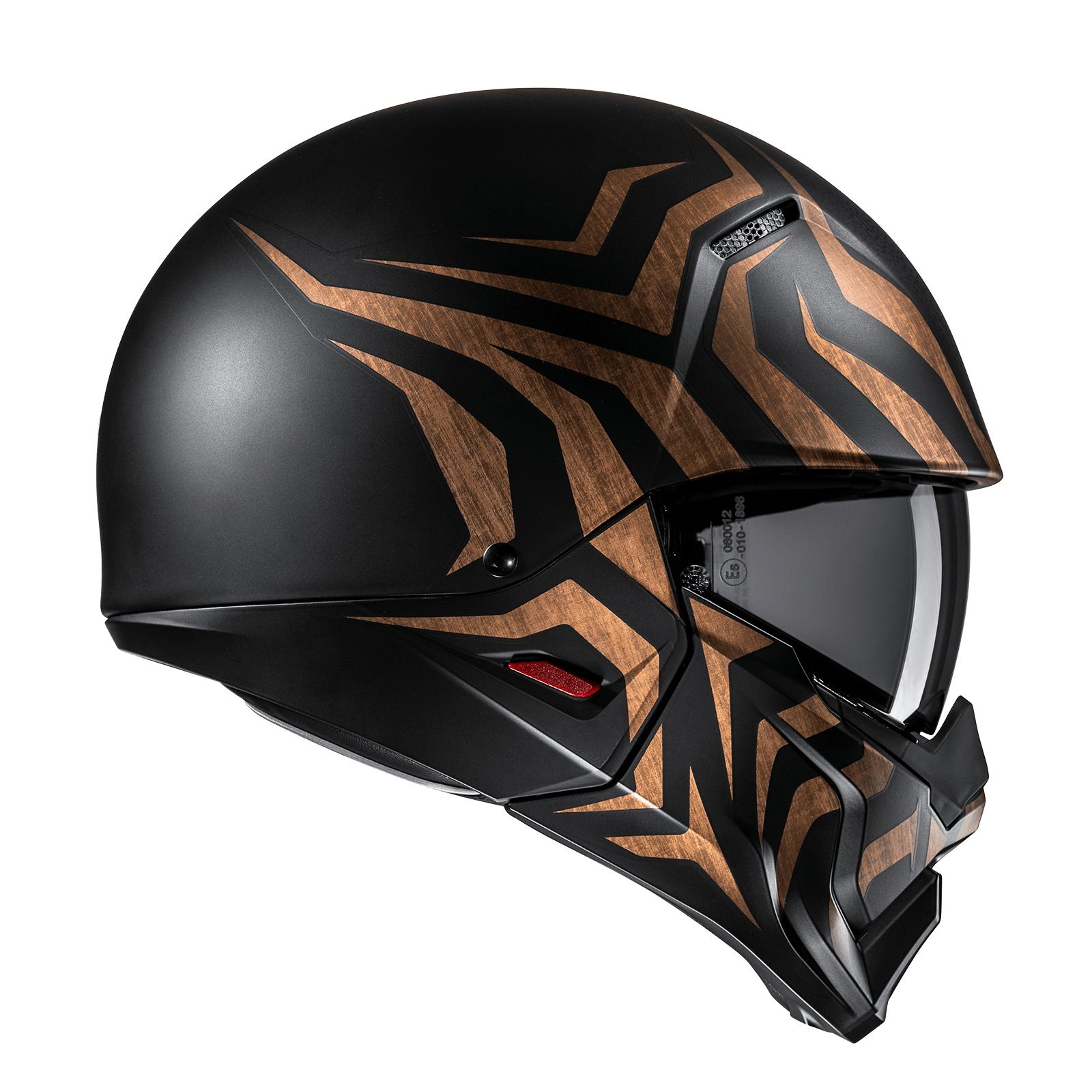 The HJC i20N Thorn is a street fighter open-face helmet with a lightweight APC shell, removable mask, anti-fog visor, and Bluetooth-ready design.