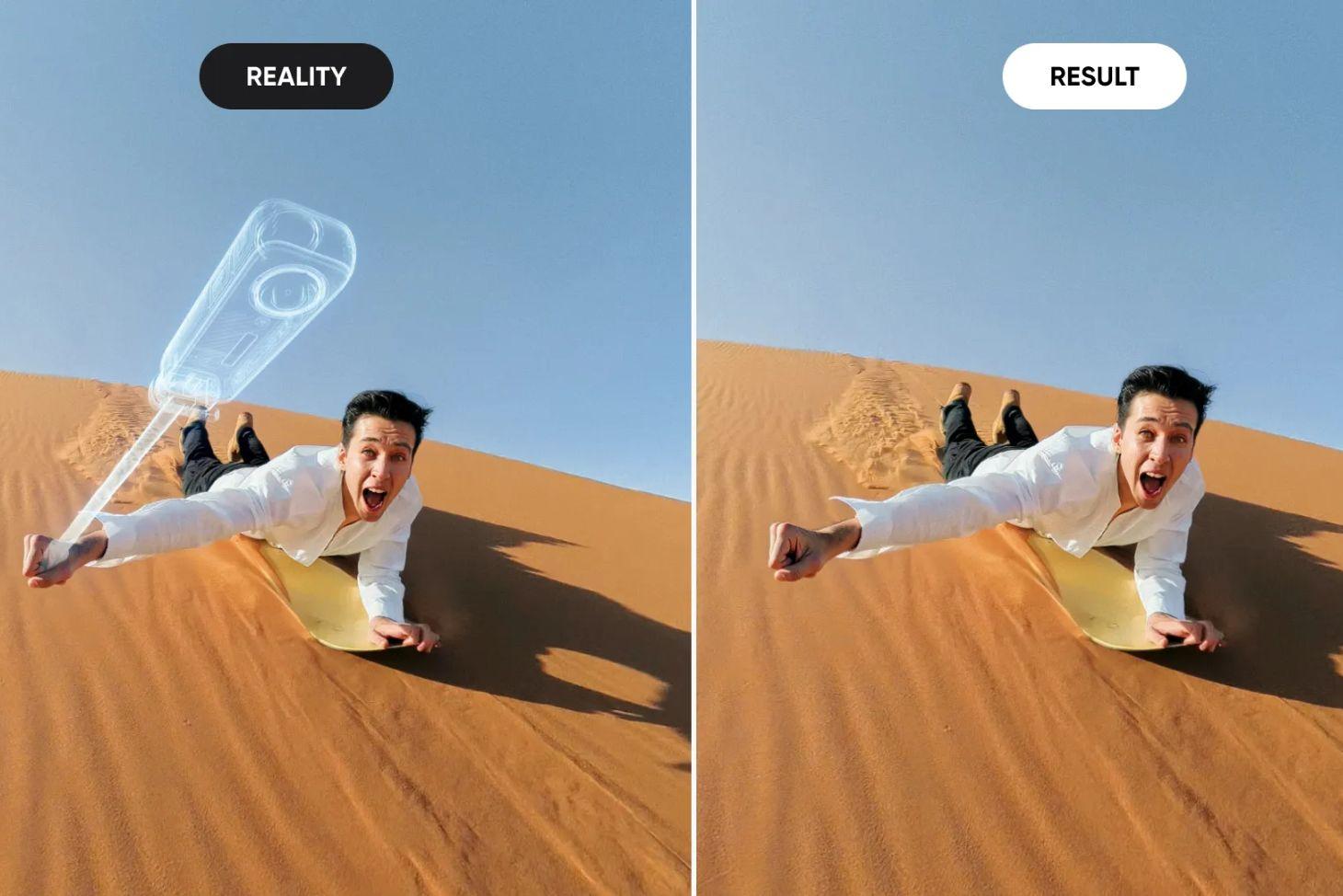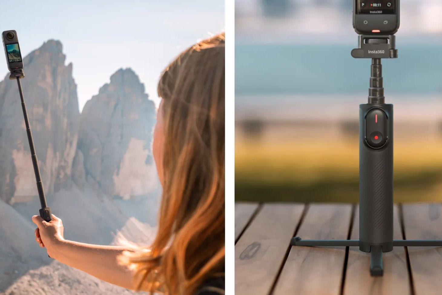 Foldable selfie stick and tripod combo with invisible effect and remote compatibility for easy, on-the-go 360° shots.
