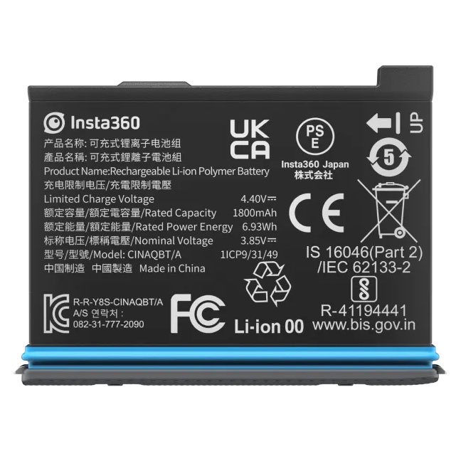 Stay charged longer with the Insta360 X3 Battery for 1800mAh of reliable power for extended shooting sessions.