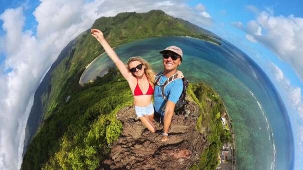 Create drone-style third-person footage using the Invisible Selfie Stick for clean, unobstructed angles.