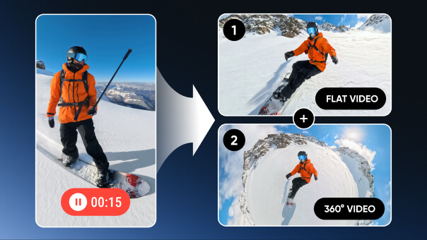 Capture a share-ready flat video and a full 360° video at the same time for flexible editing and ins