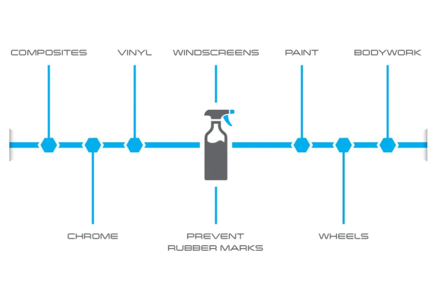 - Safely removes light rubber scuff marks, bugs, oils, dirt and grime
