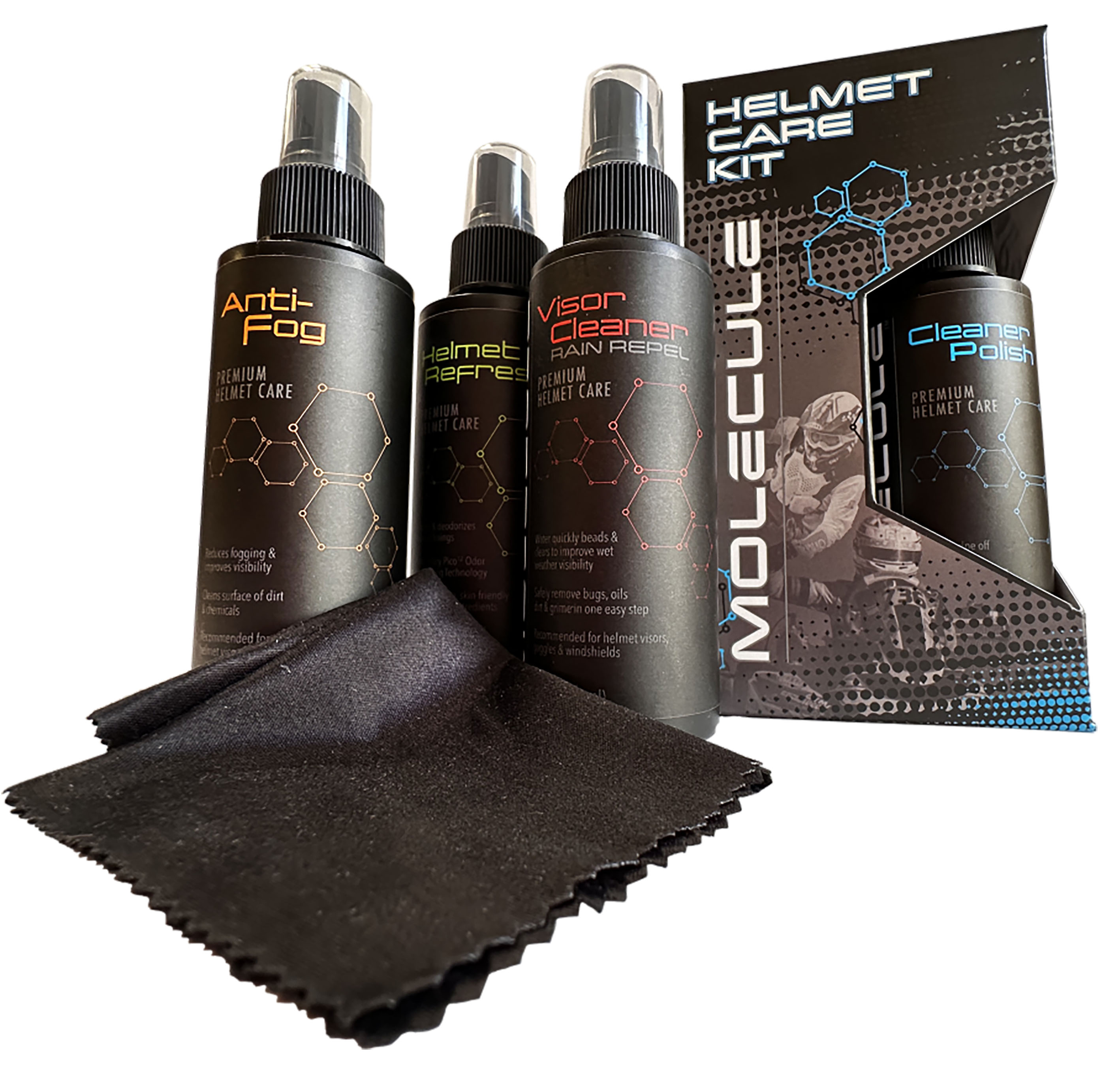 Complete helmet care in one kit—refresh the interior, polish the shell, fight fog, and repel rain. Safe for all helmet finishes. Includes microfiber towel.