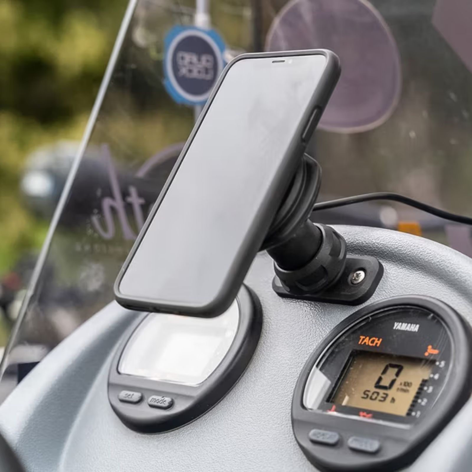 Securely mount your Quad Lock 360™ system to flat surfaces with the Flat Rectangle Base, available in 2-hole and 4-hole options, featuring universal AMPs hole spacing.