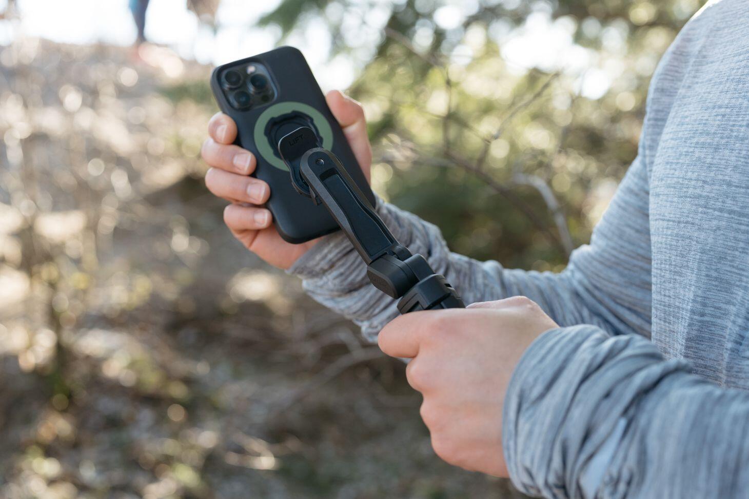 Capture perfect shots anywhere with the Quad Lock® Tripod/Selfie Stick, featuring secure mounting, compact portability, and easy angle adjustments.
