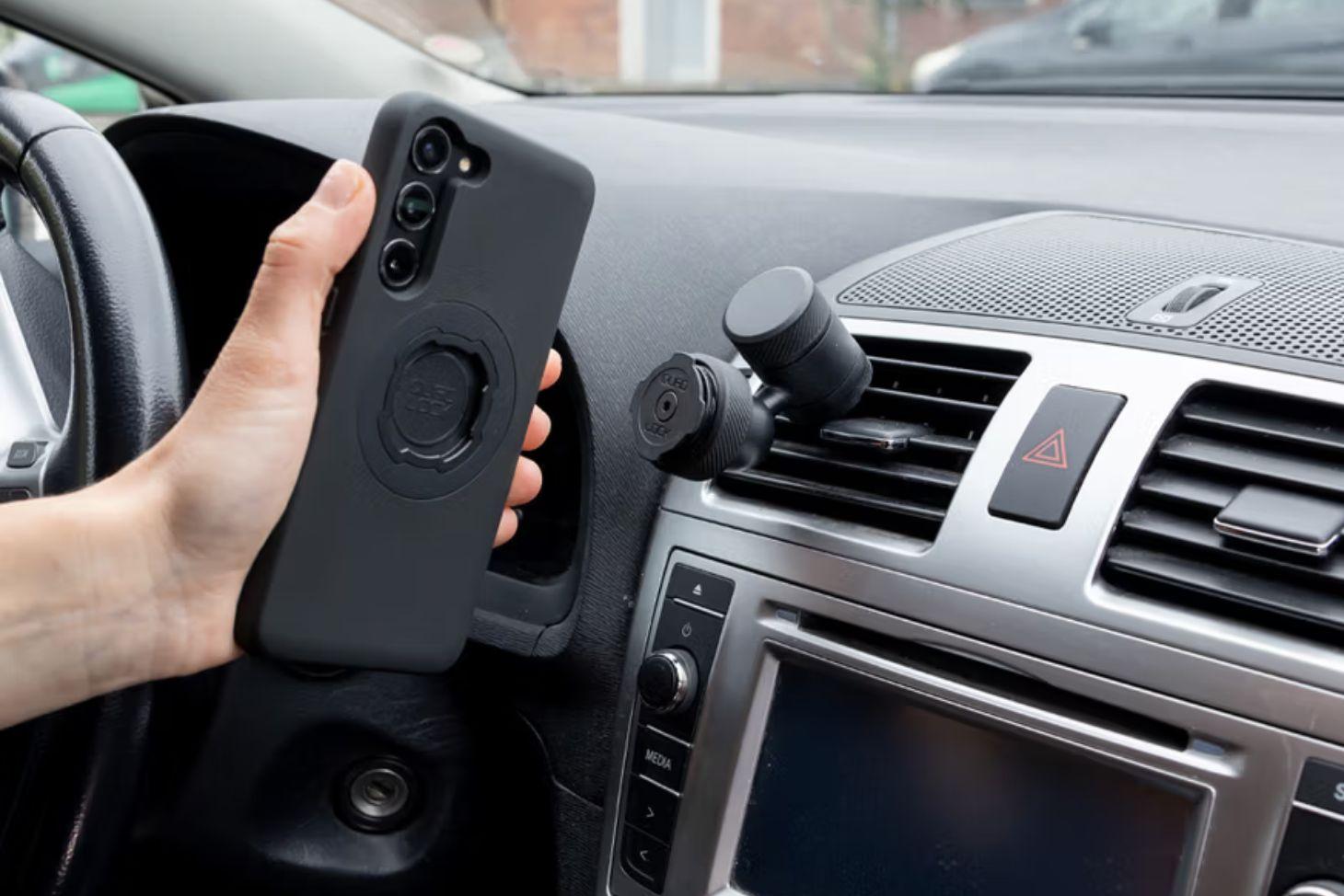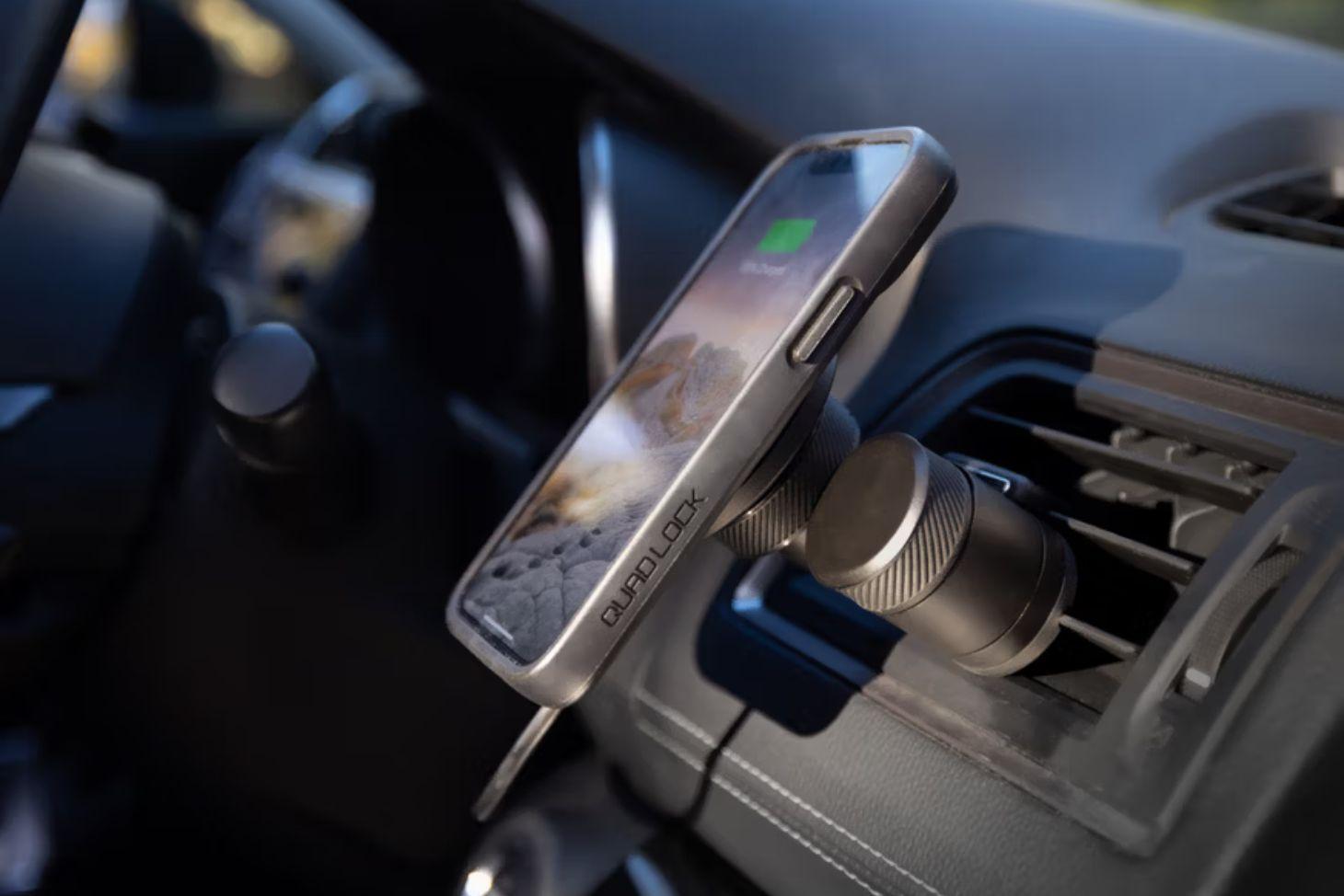 The Quad Lock® Vent Car Mount provides a secure and versatile solution for mounting your phone to your car's vents, with easy installation and adjustable viewing angles.
