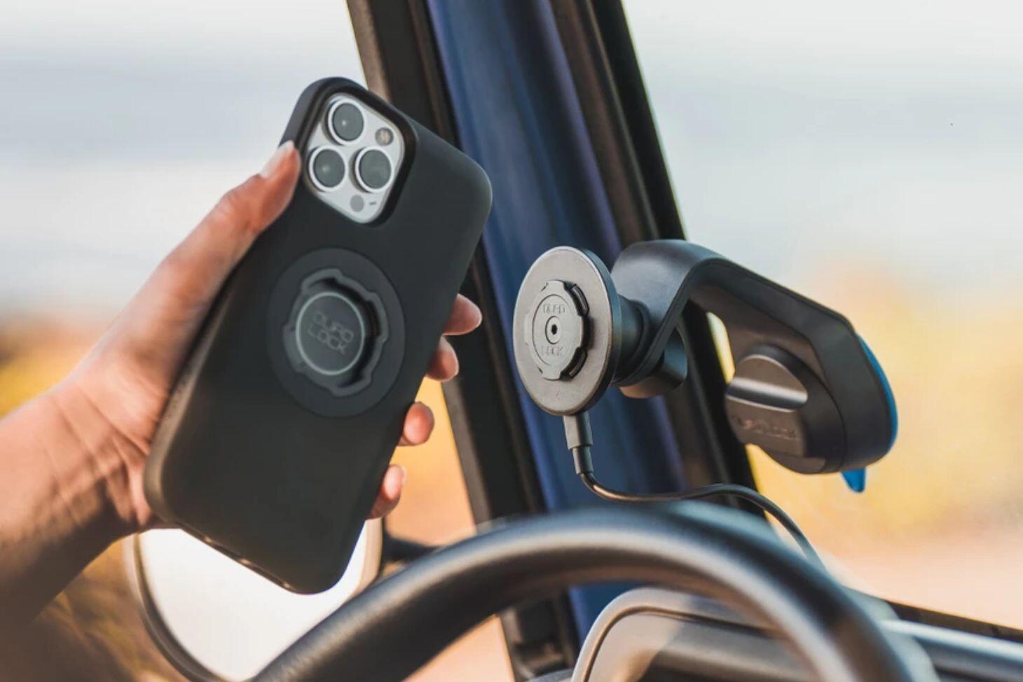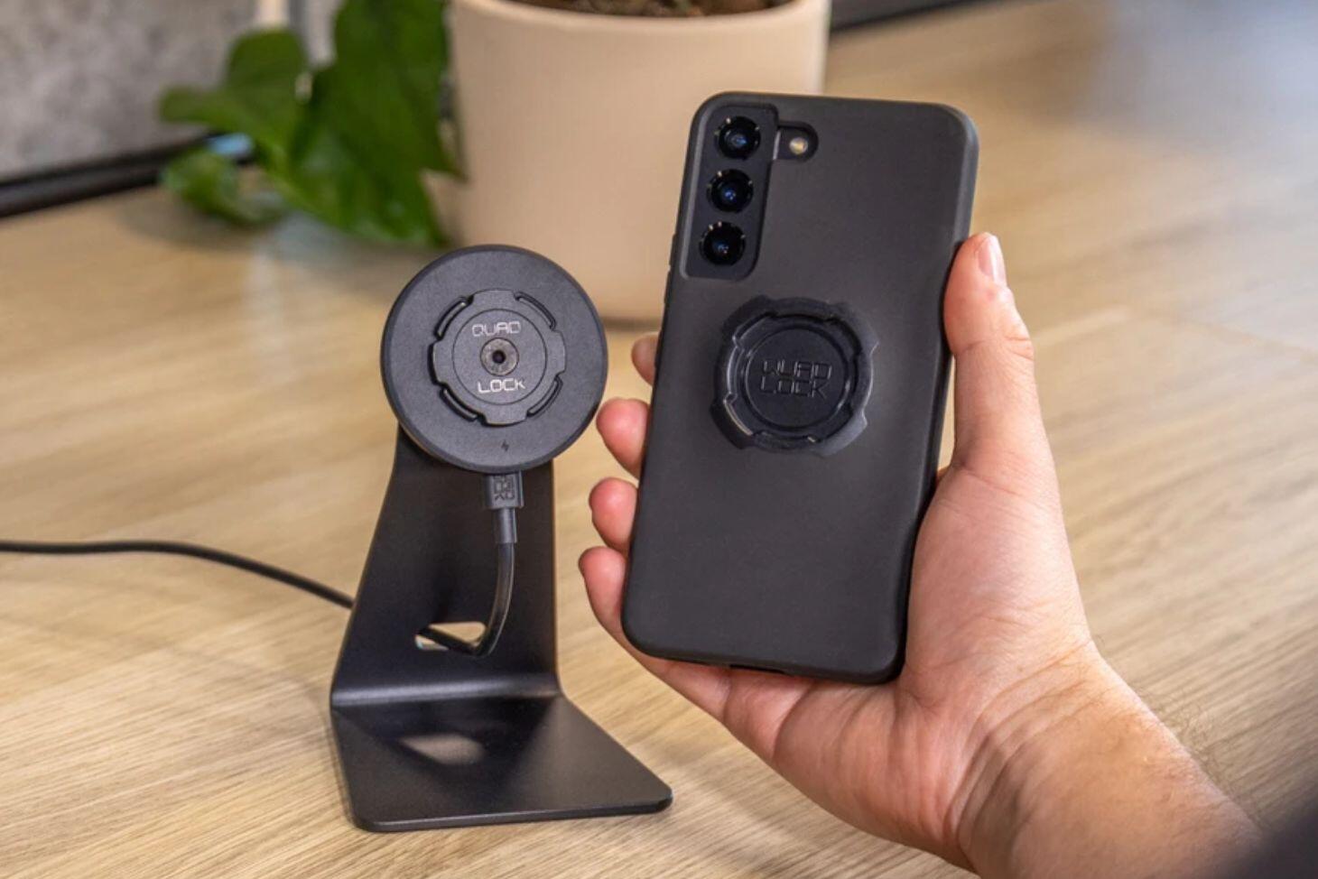 The Quad Lock® Wireless Charging Head for Car/Desk - V2 offers fast and secure wireless charging for your device, compatible with Quad Lock® Mounts at home, in the office, or in the car.
