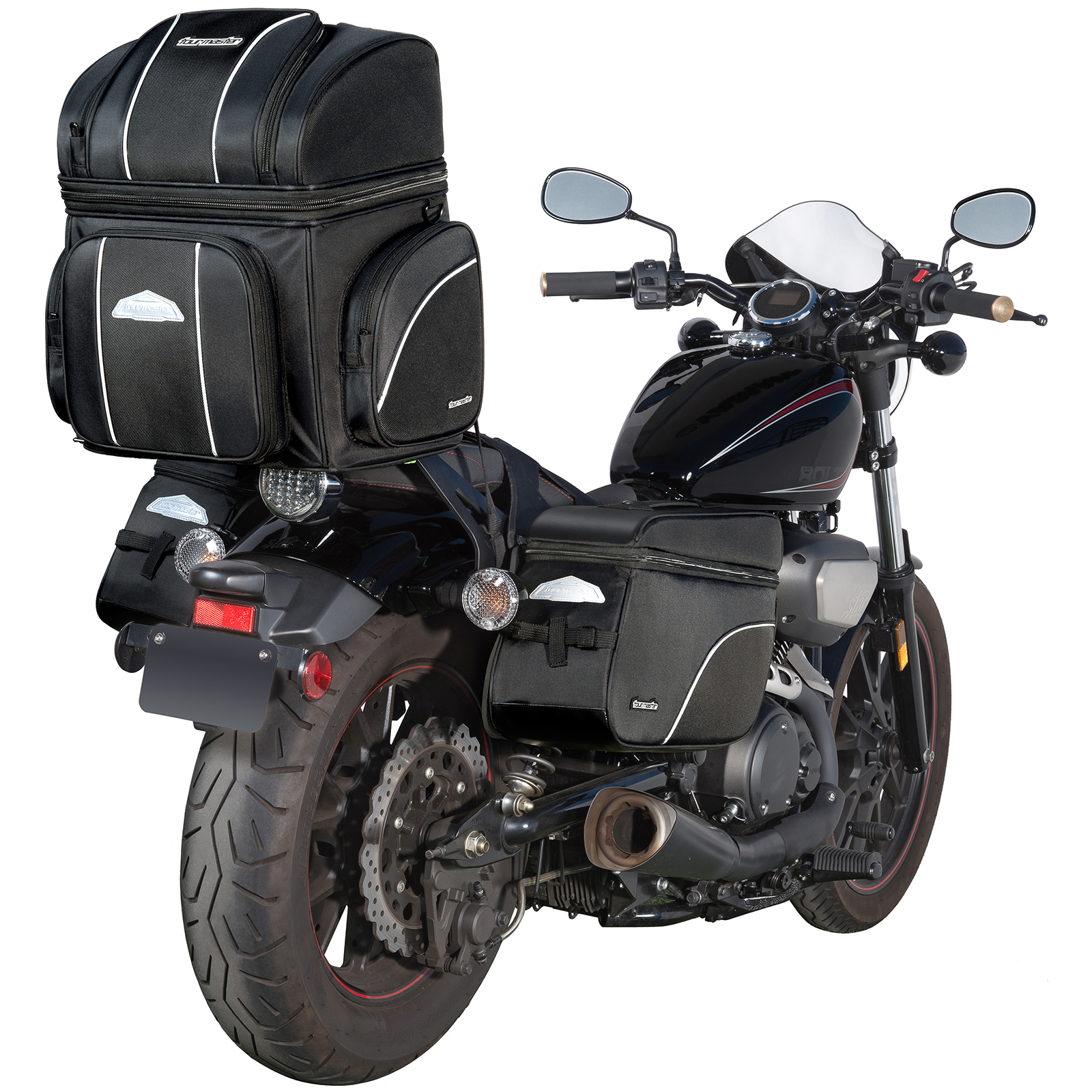 The Nylon Cruiser IV Sissybar Bag is the perfect companion for your rides, offering easy-to-use, versatile storage. Its adjustable harness fits most backrests, while the convertible compartments adapt to your storage needs. Equipped with a rain cover and reflective piping, it ensures your belongings are safe and you're visible on the road. This bag not only enhances your motorcycle's functionality but also adds convenience to every journey, whether you're commuting or embarking on a long adventure.